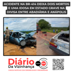 ACIDENTE NA BR-414 DEIXA DOIS MORTOS E UMA IDOSA EM ESTADO GRAVE NA DIVISA ENTRE ABADIÂNIA E ANÁPOLIS